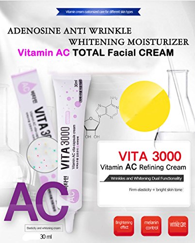 -. Feature : Vitamin AC Vita-Capsule cream 30ml X 1ea / Niacinamide is ingredient of Whitening efficacy certified in KOREA FDA, Vitamin C is more whitening brightening material. / Adenosine is anti aging and wrinkle ingredient certified in KOREA FDA / Using High-temperature steam process for stable vitamin capsule. / Paraben Free, Mineral Oil Free, Benzophenone Free, Artificial colors Free.
