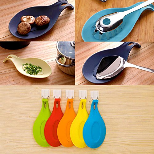 VILONG Silicone Spoon Rest Set - 5 Pieces Jumbo Spoon Rest Set With Colorful, Durable, Attractive, Heat-resistant, Dishwasher safe