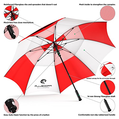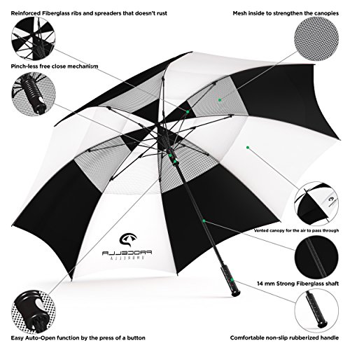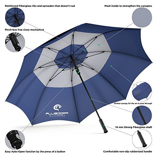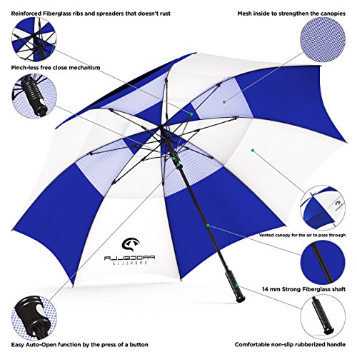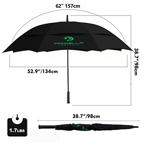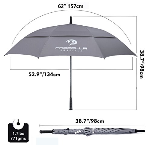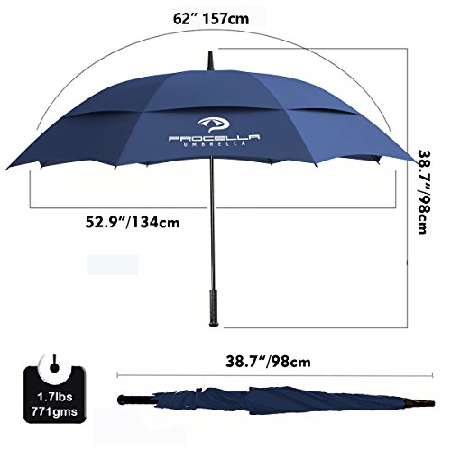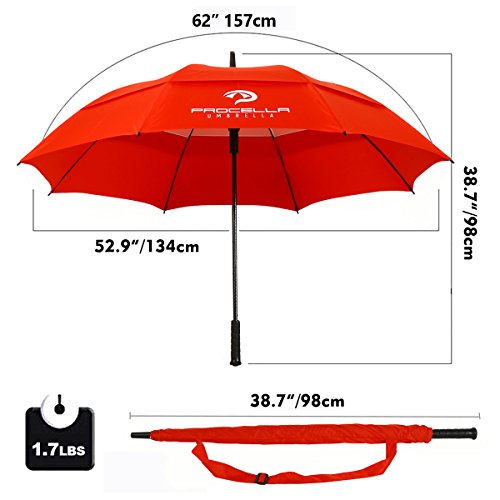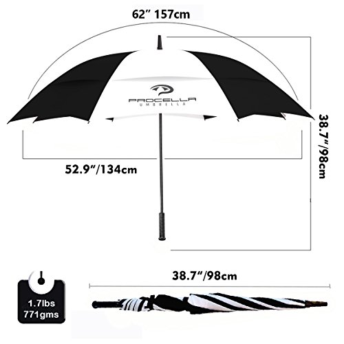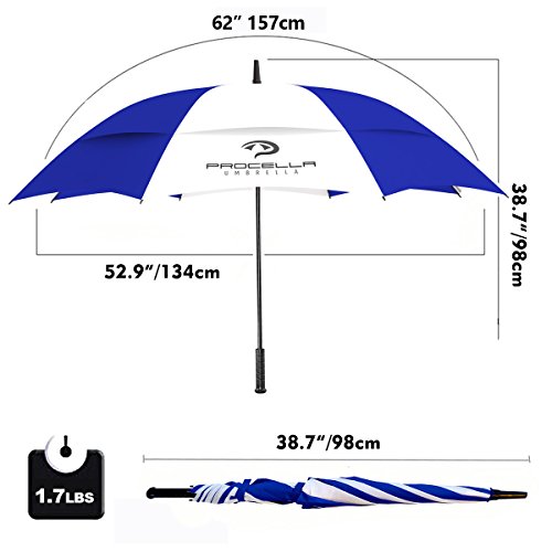 | Procella Golf Umbrella 62-inch Large Windproof Auto Open Rain Wind Resistant |