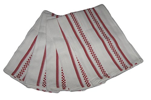 White Waffle Weave with Red Cotton Kitchen Dish Towels Set (6 Items)