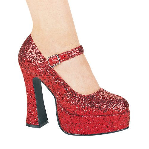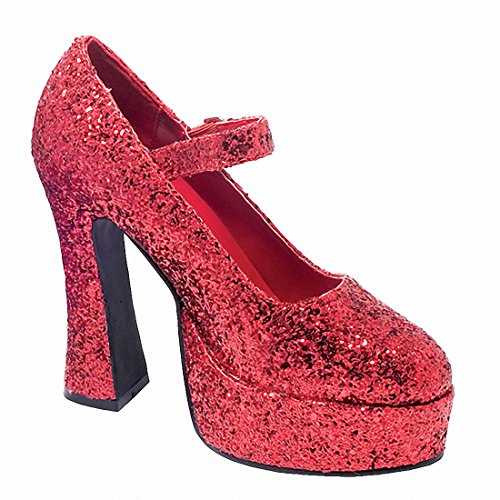 ELLIE 557-EDEN-G 5" Chunky Heel Glitter Mary Jane, Red Glitter, 12 Size