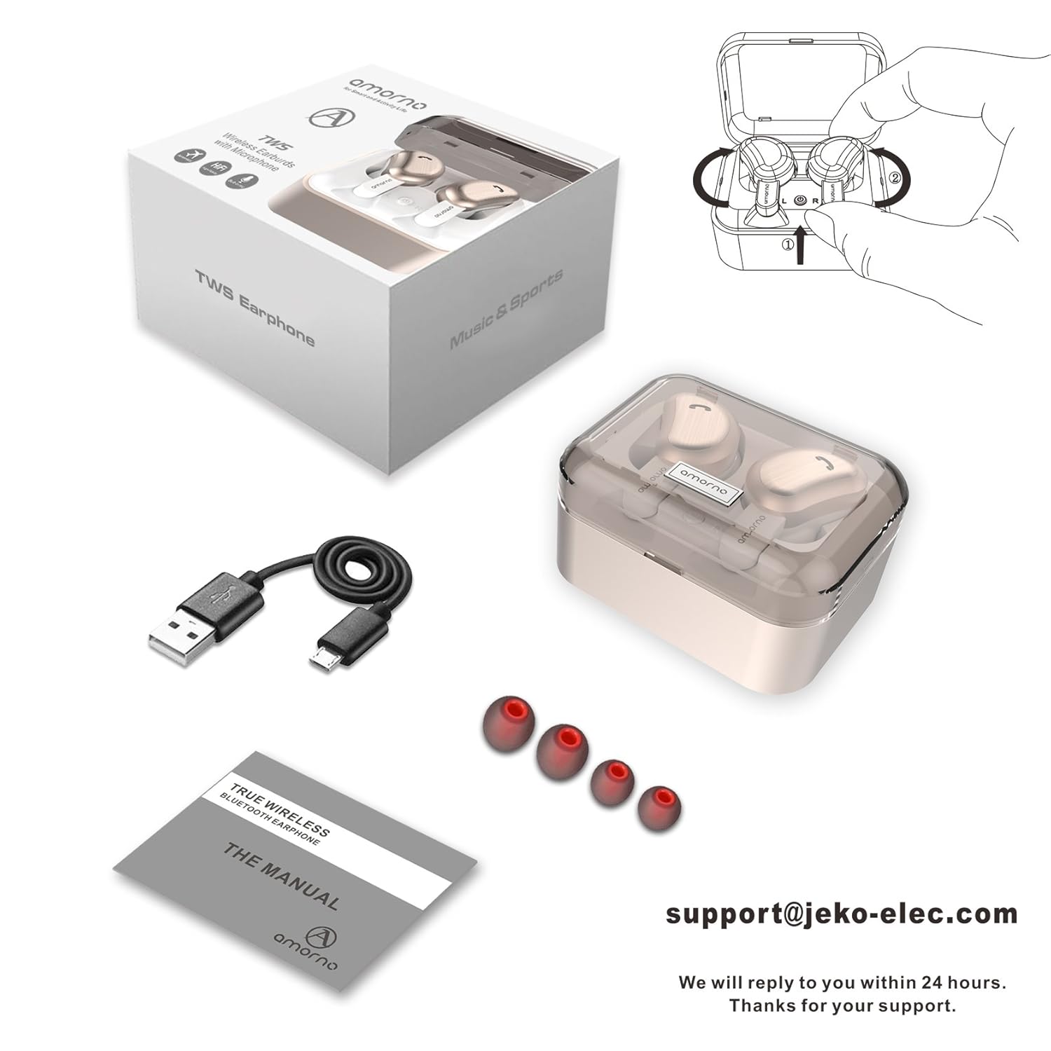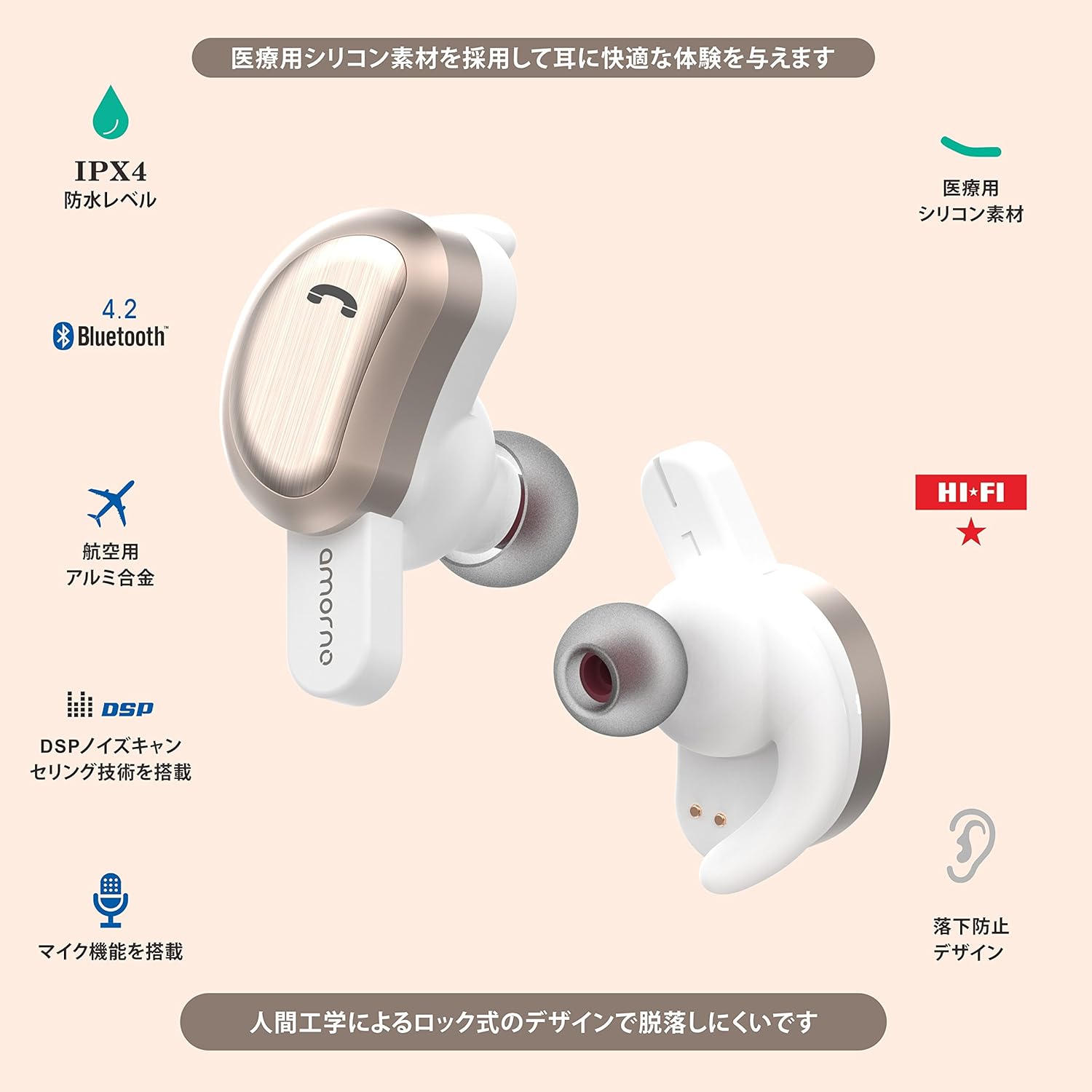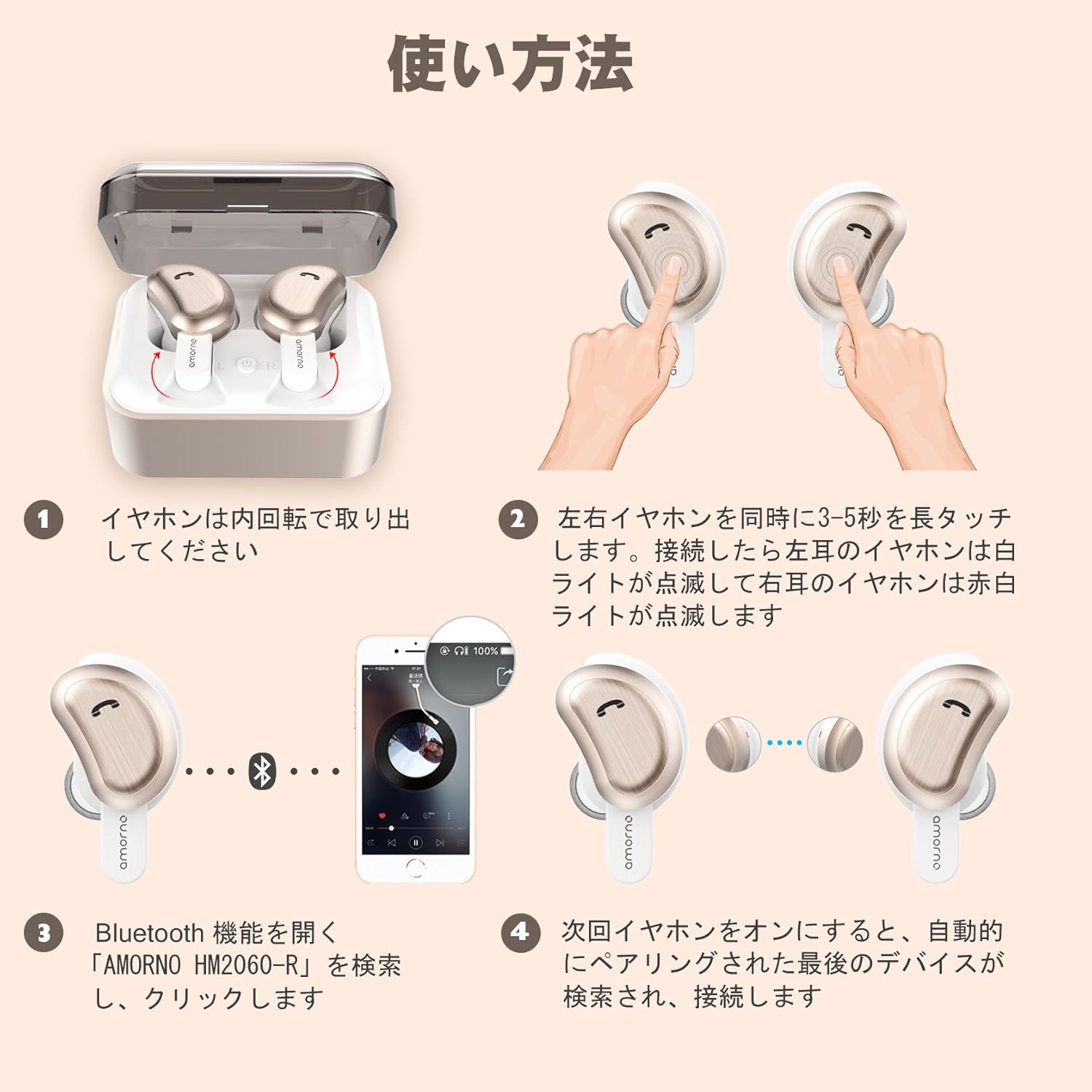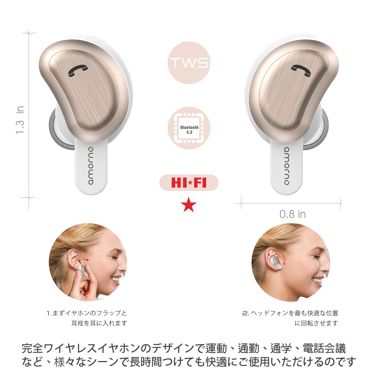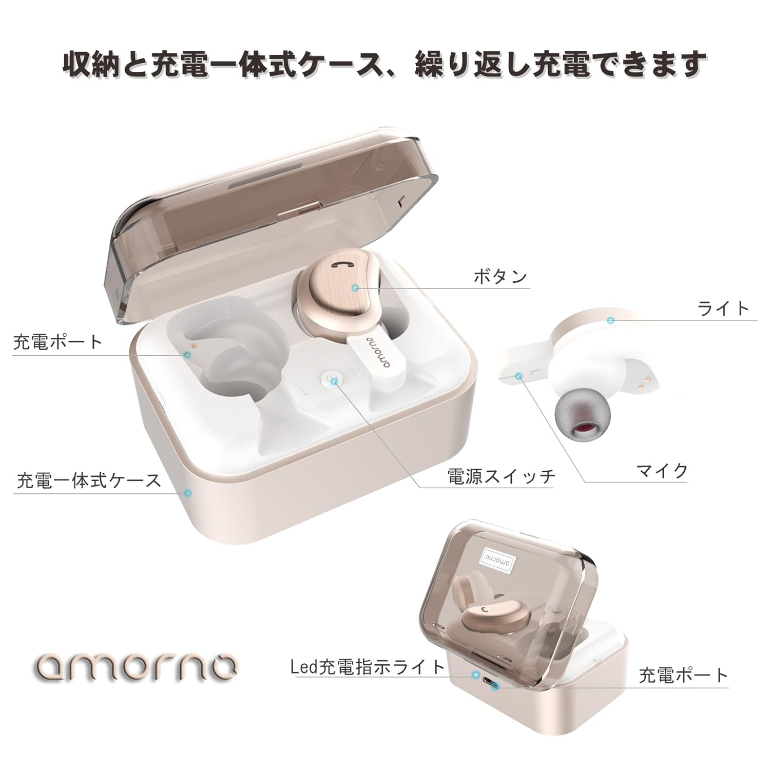 【進化版 CVCノイズキャンセル6.0技術&Hi-Fi高音質】これまでにない高音質を:最新のオーディオ技術によってもたらされる高音域は驚くほどクリアなサウンドです。10mm高磁気NdFeBドライバーや新型の複合材料ダイアフラムを採用し、クリアの音が流れ出し、迫力ある重低音を再現し、音は詳しく聞こえる。外部の音をきっちりと遮音することで深みのある低音をお届けします。CVC6.0ノイズキャンセリング機能搭載、外からのノイズを削減し、またマイク内蔵付き、クリアな通話できますし、ステレオ音楽に楽しめます。高音質を実現立体感のあるステレオサウンド、臨場感を出したり音楽に迫力を与えます。 【航空機用アルミ合金&落下防止設計】航空機用アルミ合金素材と快適なシリコンを採用し、運動、通勤、通学、電話会議など、様々なシーンで長時間つけても快適にご使用いただけるのです。脱落することを心配する必要はありません。三つの耳栓カバー付き(S / M / L)スリーサイズです。人間工学に基づいてスポーツデザインに設計され、イヤホンを耳にしっかり固定できます。 【収納と充電一体式ケース】イヤホン本体がフル充電状態で、最大3時間の音楽再生が可能です。収納と充電一体式ケース付属し、イヤホンを紛失防止だけではなく、繰り返し充電も出来ます。満充電の充電ケースで左右イヤホンを約10-15時間ぐらい充電可能です。 【多機能接続可能】両耳モード:2つのイヤホンを同時に使用してチャンネルステレオ効果を楽しみます。 片耳モード:左右イヤホンは別々使用できます。(プライバシーとセキュリティを確保するために右のイヤフォンのみが通話できます。)。 二つのワイヤレスイヤホンは、iPhoneまたはiPadなどの2つのBluetoothデバイスを接続できます 【互換性が広い&メーカー保証】iPhone、Samsung、Blackberry、HTC、iPad Pro、Bluetoothを搭載するタブレットなど全てBluetoothを搭載できる機種にご使用いただきます。ご購入後12ヶ月のメーカー保証が付いており、、何かご問題とかありましたら、いつでもお問合せください。