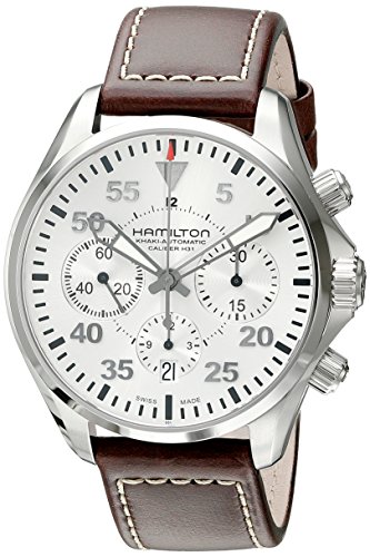 -. Binding : Watch -. Brand : Hamilton -. Department : mens -. EAN : 7640127756232 -. Feature : Round watch featuring skeleton hands, date window at 6 o'clock, and subdials with 60-second, 12-hour, and 30-minute functions / 42 mm stainless steel case with antireflective-sapphire dial window / Automatic self-wind movement with analog display / Contrast-stitched leather calfskin band with buckle closure / Water resistant to 200 m (660 ft) -. Label : Hamilton -. Manufacturer : Hamilton -. Model : H64666555 -. MPN : H64666555 -. PackageQuantity : 1 -. PartNumber : H64666555 -. ProductGroup : Watch -. ProductTypeName : WATCH -. Publisher : Hamilton -. Studio : Hamilton -. Title : Hamilton Men's H64666555 Khaki Aviation Stainless Steel Automatic Watch with Brown Leather Band