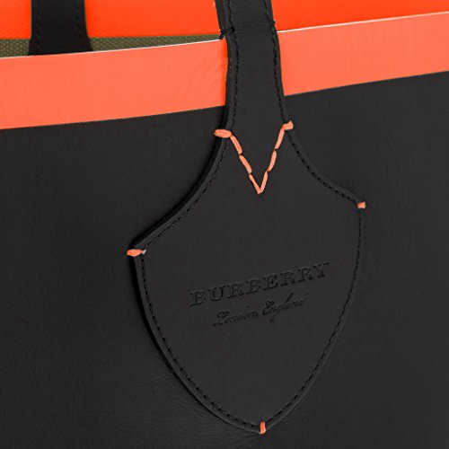 Product Description Burberry Women's Medium Giant Reversible Tote in Canvas and Leather Orange:A?A reversible tote in Canvas check bonded to leather. Neon sealed seams add a clash of color to the unisex bag. 56% jute, 44% cotton bonded to 100% calf leather. Trim: 100% calf leather. Hand-painted edges. Embossed Burberry lettering at strap tabs. Made in Italy. Approximately: 12.2a€ H x 20.1a€ W x 6.1a€ D 0