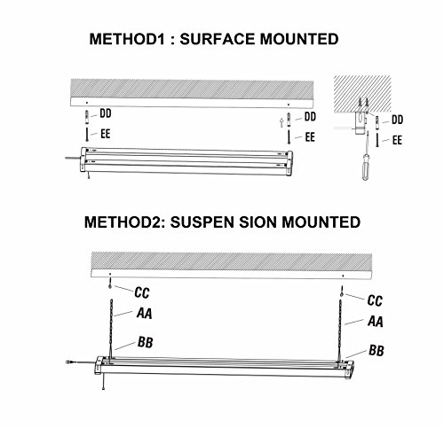 - Wide Application :100-277Vac input; Choose either hanging mounting or flush mounting as you wish. Hassle free installation, simply plug and play. Ideal for garages, basements, workshops, utility and recreation rooms, storage rooms, barn, equipment rooms, large area lighting requirements, industrial workstations, workspace, carports, auto shops, task and general purpose lighting.