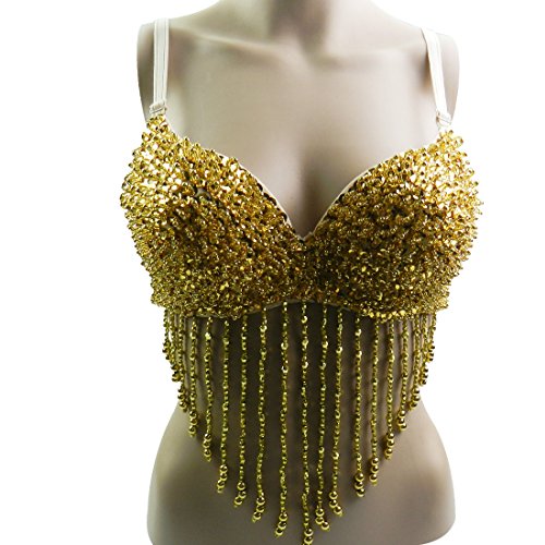 -. Title : Night lions fashion belly dance sequin beaded bra top (36B/34C Gold)