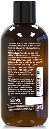 UNREFINED COLD PRESSED - Carefully Processed to Retain Delicate Essential Fatty Acids and Active Ingredients. Not Extracted with Chemicals! Every Batch Tested for Quality. Certified Organic Neem Oil and OMRI (Organic Materials Review Institute) Certified Wild Crafted Neem Oil Blend.