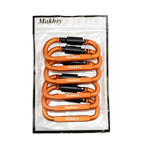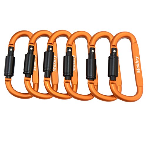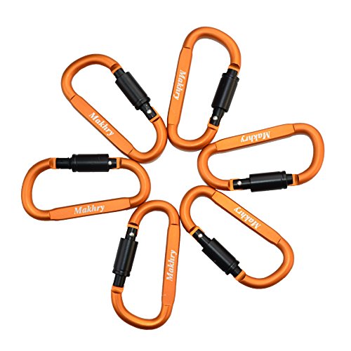 Makhry 6pcs/set Aluminum Carabiner Screw Lock D-ring KeyChain Clip Hook Outdoor Buckle for Camping Hiking Fishing (Orange)