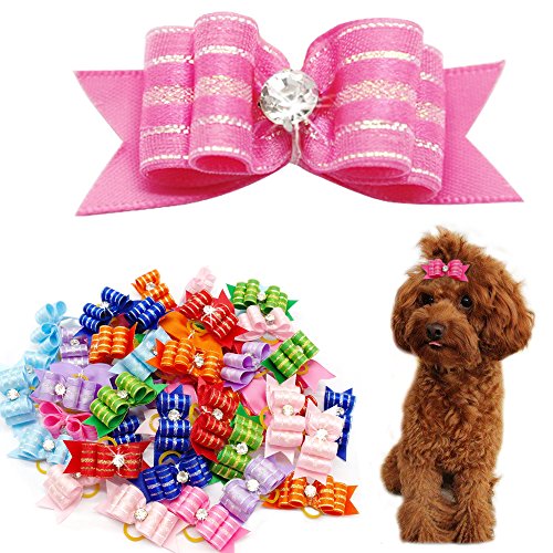 -. Feature : If you like to dress up your little angles,dogs or little girls, you will not be disappointed. / Classic design,beautiful uniform bows,nice assortment of colors,multi-pattern. / Made of high quality material that can keep in shape.The rubber band is sturdy and can keep in the shape. / 50 pcs,enough quantity fit groomer business. / Fit puppy,small medium dog and cat,such as Yorkie,Maltese,Shih Tzu,Poodle.