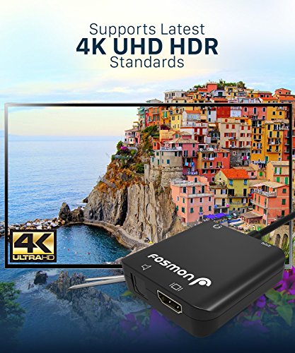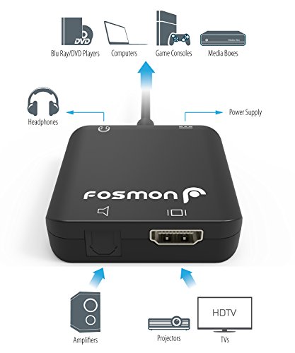 HDMI Audio Converter, Fosmon UHD 4K HDMI to HDMI + SPDIF Optical Toslink / 3.5MM Stereo Audio Extractor Converter, HDMI Audio Splitter with Pigtail HD Support 3D 1080p