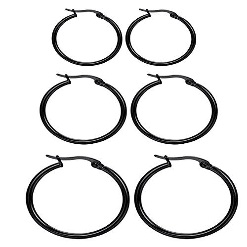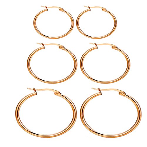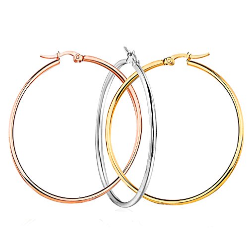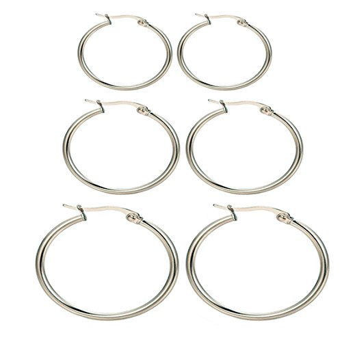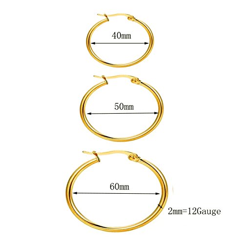 Nicever 40mm 50mm 60mm Stainless Steel Rounded Large Hoop Earrings for Women Girls 3 Pairs.