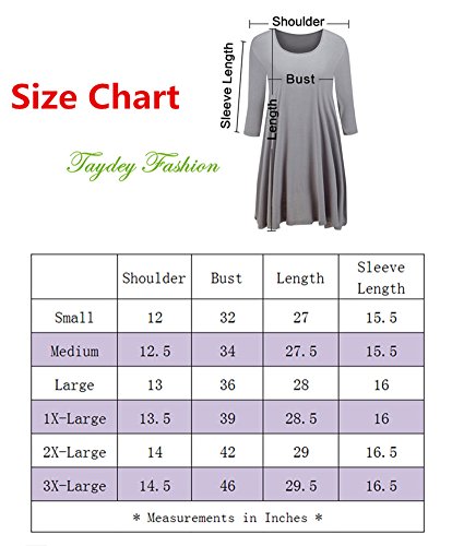 | Taydey Womens 3 4 Sleeve Round Neck Tunic Tops |
