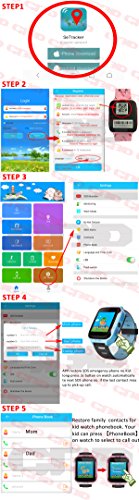 1.44 inch Touch Kids GPS Tracker Smart Watch with Camera SIM Calls Anti-lost SOS Wrist Watch Smart Bracelet for Children Girls Boys Finder Safety Monitor Flashlight (Blue)