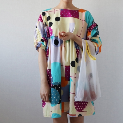 미니드레스는 이 매력적인 패턴을 더욱 돋보이게 만들어 주어요. 가슴에서부터 에이라인으로 톡 떨어지는 디자인이 굉장히 귀엽답니다.