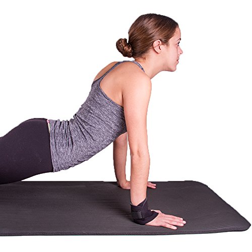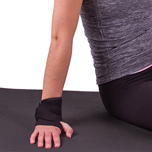 -. Feature : Wear for mild pain relief and wrist injury prevention during yoga, gymnastics, pilates, lifting, CrossFit, and other exercise or athletic activity / Relieves pain from wrist strains and sprains caused by athletic injuries, arthritis, and overuse. Protects your wrist against further damage or injury. / Manufactured from premium grade, flexible latex-free neoprene compression material / Designed for both men and women. Fits right or left hand. Easy to adjust the compression level. / Available in one universal size, fitting wrist circumferences up to 9"