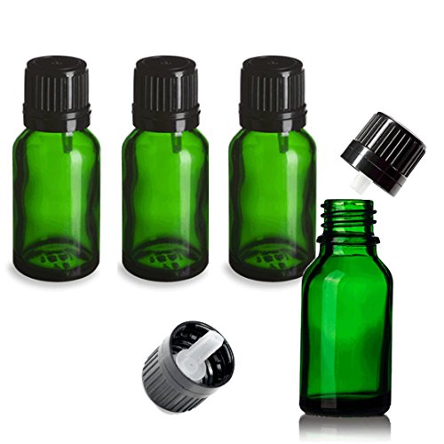 Grand Parfums 15ml Green Euro Dropper, Boston Round Bottles for Dispersing and Storing Aromatheraphy Products (6 Bottles)