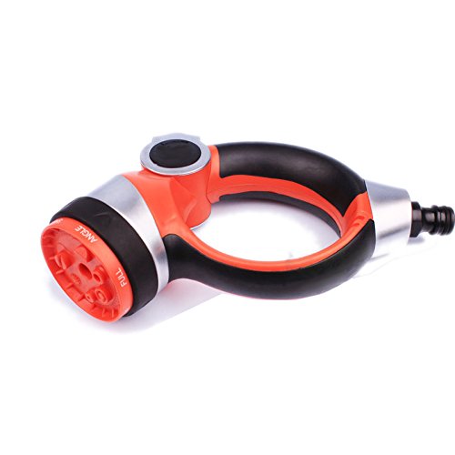 -. Title : Rocsai Garden Hose Nozzle / Hand Sprayer - 8 Pattern Watering Nozzle - High Pressure - p.i.s.t.o.l Grip Front Trigger - Flow Control Setting Knob - Suitable for Car Wash, Cleaning, Watering Lawn and Garden - Ideal for Washing Dogs & Pets