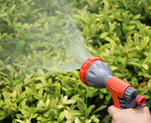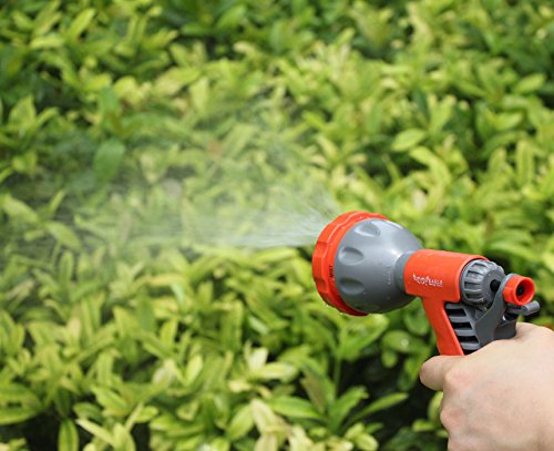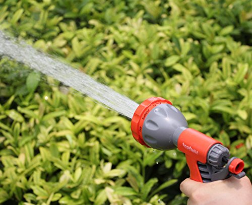 -. Feature : 8 WATERING PATTERNS - For Every Watering Need. Weather you need the high pressure jet to clean the hard surface or the soft shower to wash the dog, the 8 patterns have you covered. Patterns: Center, Mist, Cone, Full, Angle, Shower, Flat and Soaker / ERGONOMIC SOFT RUBBER COMFORT GRIP - Means comfortable spraying. Your Hand Won't Tire. The soft rubber coating makes this nozzle very comfortable in your hand so you can water for long periods of time. / Washing cars, cleaning gardens/pools or showering your pets in your right type of stream! / COMPLETE SET: Gun nozzle with standard hose connector, included 1 x tap connector, 2 x quick connectors / 100% CUSTOMER SATISFACTION GUARANTEE - Order with confidence! The Gardenite 100% customer satisfaction guarantee means exactly that. We will fix any problems quickly and to your 100% satisfaction every time! We are always available to help our customers. Our customer service record is unmatched!