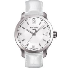 -. Title : Tissot PRC 200 White Leather Mens Watch