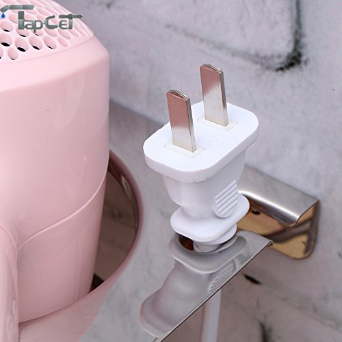 DESIGN- Multi-functional for storage: Flat part for holding the bottle shape item like shampoo; Cylindrical tank part for storage comb or brush; Hooks part for hanging towel, bath ball; Spiral part for holding the hair dryer; Plug holder design for the plug of blow dryer holder; wall-mounted design, makes the holder to be more solid on the wall be more solid on the wall