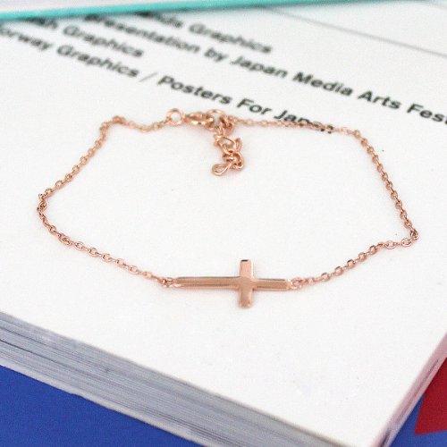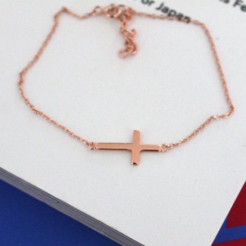 - Title : Rose Gold plated Solid Sterling Silver Sideways Cross 7" - 8" Bracelet