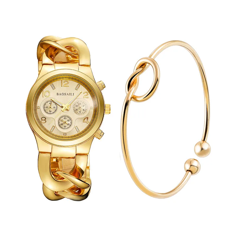 | [해외] BAOSAILI BSL857 전체 스틸 석영 팔찌 시계 여성 3 눈 여성 손목 시계 레이디 링크 체인 밴드 여성 시계 |
