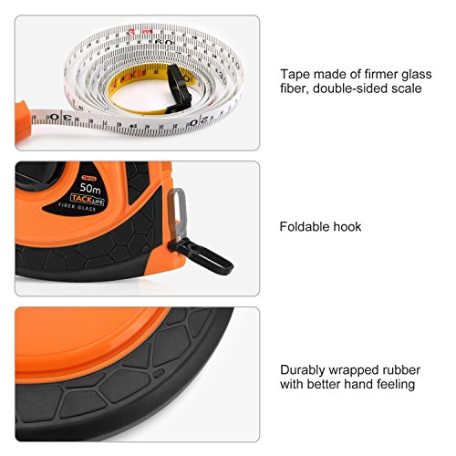 Tacklife TM-C03 Classic Tape Measure 164Ft Fiberglass Measuring Reel Retractable Double-Sided Metric and Imperial Scale Engineer Tape Ruler