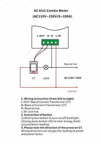 The blue backlight can be turned on/off manually. The CT can be either on Live line or Neutral Line.