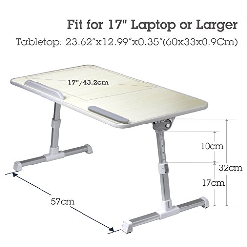Avantree Adjustable Laptop Table for Bed (Large Size), Portable Standing Desk, Foldable Sofa Breakfast Tray, Notebook Stand Reading Holder for Couch Floor Kids - TB101L