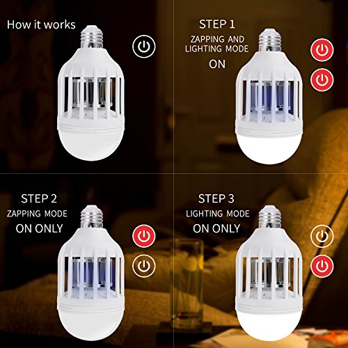 - TWO IN ONE FUNCTION: This excellent fly killer great for use as house lighting and bugs, insects, fruit flies and mosquito control. The mosquito zapper bulb can be used as either a light bulb only, as a zapper only or both. For best results, keep the door closed while in use.