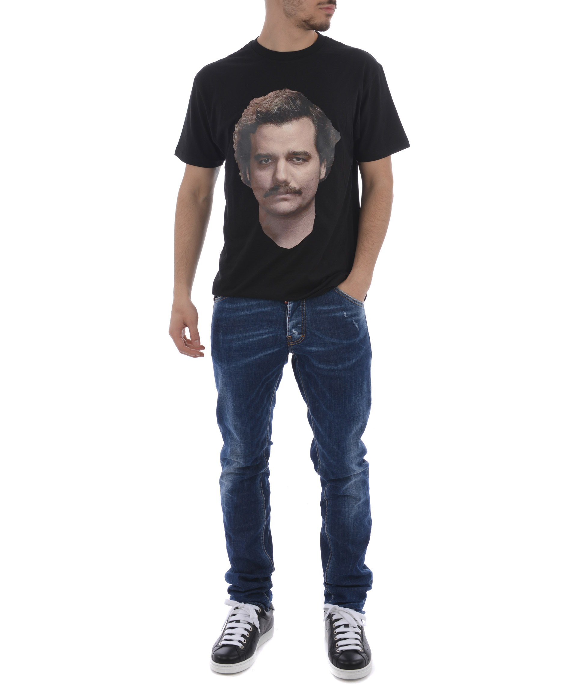 T-shirt In Nom Uh Nit in cotone Nero. Stampa frontale "pablo escobar". Girocollo. Manica corta. Logo stampato sul retro. Misura in foto M 100% cotone