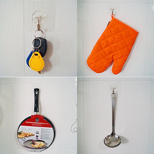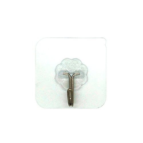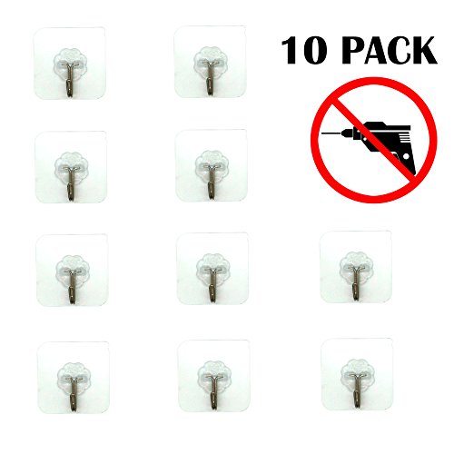 H-Partner 10 Pack 22lb/10kg Nail Free Powerful Adhesive Reusable Heavy Duty Wall Waterproof Hooks For Bathroom Kitchen Wall Ceiling (Transparent)