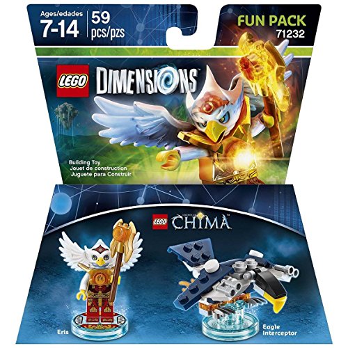 -. Feature : 2 LEGO fun building kits with minifigures & vehicles; Lego Dimensions pack bundle with Laval the Lion Prince with Lion Rider & Blazer; Eris the Eagle Princess w/Interceptor & Skyblazer / Build 3 different vehicles w/each set, & more; Play as characters in Lego Dimensions Video Game; Compatible with Wii U, Playstation, Xbox; for children ages 7+ / Interlocking blocks - great teaching tool, learning/educational toy for engineering students; Great birthday gift, Christmas or other holiday present, stocking stuffer for kids, teens, adults, boys & girls; Detachable parts - follow instructions or use your own creativity / Made in Denmark, Hungary, Mexico, Taiwan, Czech R.' Pack: 6.75"W x 2"D x 7.5"H / (2) LEGO Dimensions Fun Packs From The Legend Of Chima (1 Laval The Lion Prince & 1 Eris The Eagle Princess), Models 71222 & 71232, New In Boxes