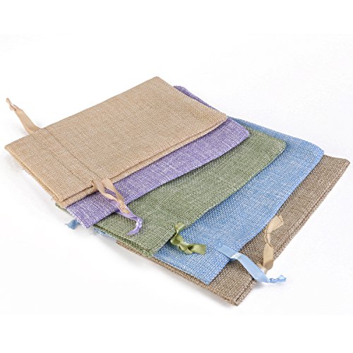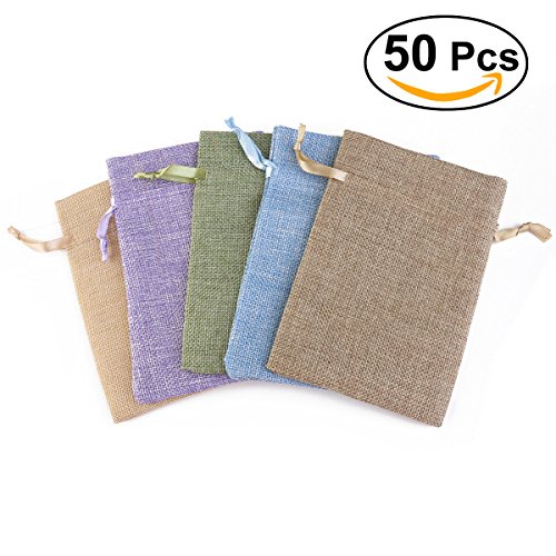 OULII Gift Bags Candy Bags Garden Natural Linen Drawstring Bags Pouch for Favors/ Parties/ Crafting, pack of 50