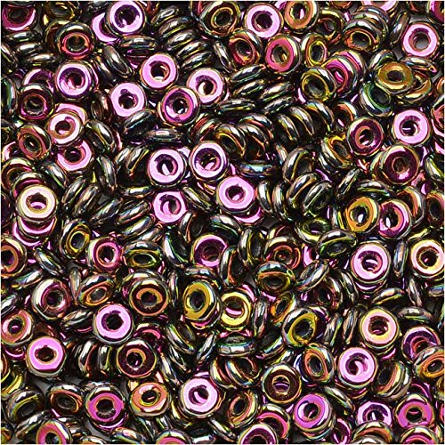 Czech Glass Flattened O Beads, 3.8x1mm, 8 Gram Tube, Jet Vitrail Full