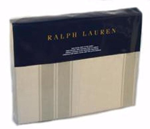 -. Title : Amagansett Further Lane Ticking King Fitted Sheet - Tan / Sage
