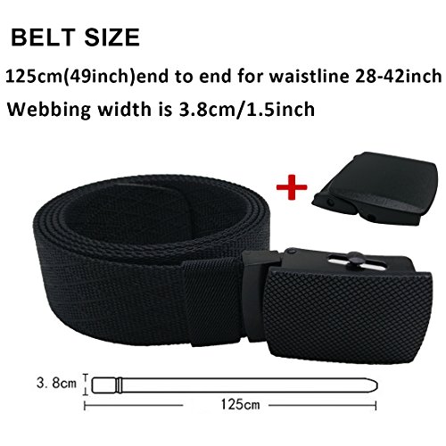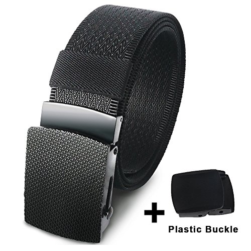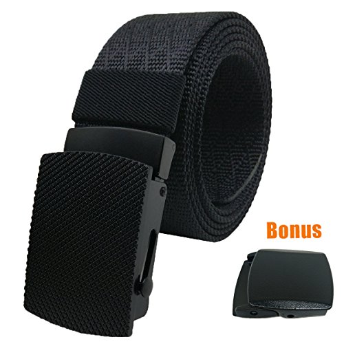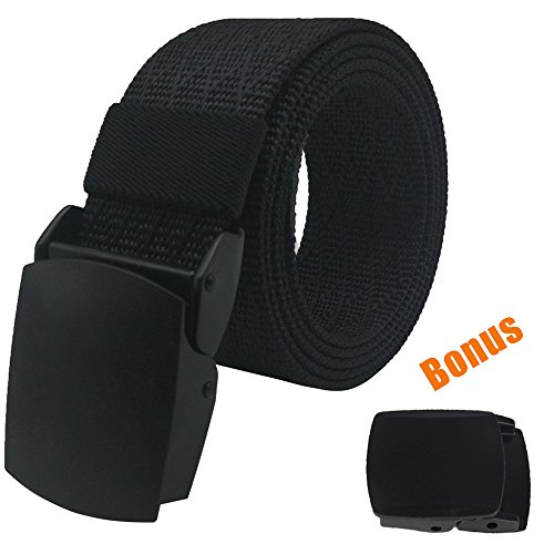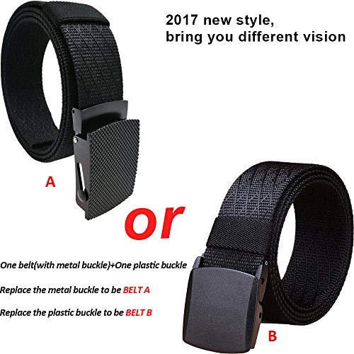 Hoanan military belt, mens tactical nylon webbing belt with metal buckle web belt and bonus plastic buckle.