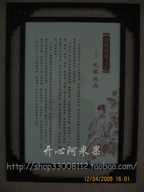 | 阿米果说: | 谢馥春传统产品主分“香、粉、油”(香件、脂粉、头油)三大类,鸭蛋香粉是谢馥春“三绝之一”。具有轻、白、红、香的特色(《红楼梦》中有相关描述》),清廷选作贡粉,民间称之为宫粉,故有天下香粉莫如扬州的美誉。 | |||