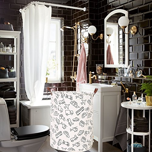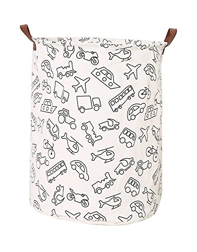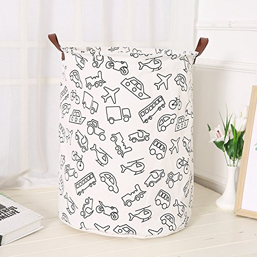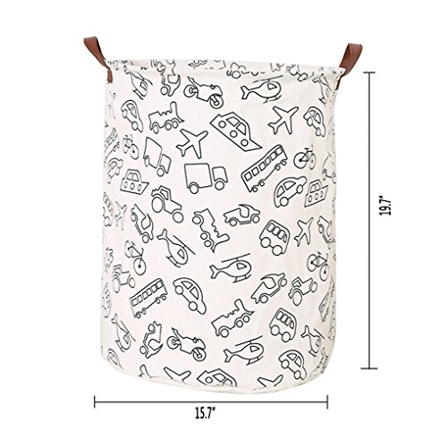 Outdoorfly Foldable Canvas Laundry Hamper with Handles Waterproof Resitstance Soiling Laundry Basket Large Toy Storage Bins Without Lid for Women Girls 15.7"x 19.7"(Vehicle)
