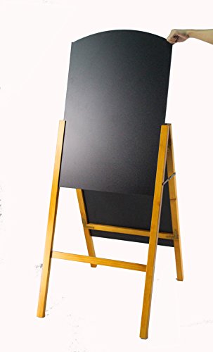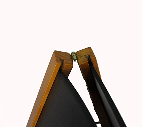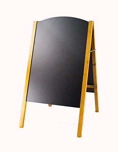 Chalkboard Easels with Double-Sided Writing Surfaces Pine-colored, wood frame coordinates with any indoor business settings. Hinges allow the a-frame to fold flat for transport and storage. Double-sided 21" x 34" blackboards draw attention from multiple directions. Slide-in textured writing surface for use with stick chalk, wet-erase neon pens and liquid chalk markers.