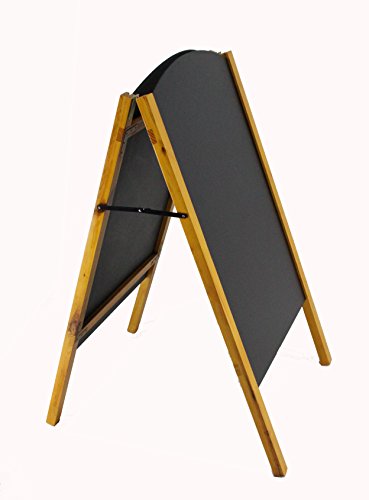 The beautiful wood finish of this product enables the unit to be used in a wide variety of business locations. These chalkboard easels, also called a-frame blackboards, come with two rounded top writing surfaces, twice the writeable space! Each unit has a 21" wide by 34" high writable area which provides users with plenty of space to create their own advertisement. Businesses can use these wooden chalkboard easels that are double-sided to show messages on both sides.