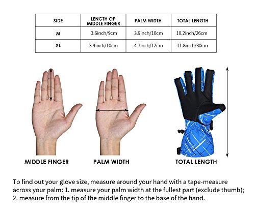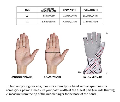 GARDOM CREATE INFINITE POSSIBILITY Description GARDOM Water Resistant Ski Gloves for Men Women (1)Superior water resistant material always keeps your hands fresh and dry. (2)Anti-slip durable PU palm allows easy grip for ski poles, bicycle handles and other equipment. (3)Padded cotton adds extra warmth and comfort for your hands. (4)Fleece lining makes it much comfortable and allows your hands move freely inside it. (5)Elastic string cuff prevents cold air getting in and keeps hands warm all day long. (6)You can adjust the wrist strap to fit your hands well according to your needs and prevent gloves slipping down. (7)Anti-lost buckle can connect the pair of gloves easily and you¡?ll never worry one of them getting lost. (8)With a back small zipper pocket, you can keep your small items organized. (9)Ideal for most winter sports like cycling, skiing, skating, etc. Specifications Dimensions: XL - 11.8 x 4.9 inches / 30 x 12.5cm? Weight: 0.37lb. / 170g ??????????? M - 10.6 x 4.5 inches / 27 x 11.5cm? Weight: 0.33lb. / 150g Warranty If you have any issues with our products, please feel free to contact us. Package Included 1 x Pair of GARDOM Ski Gloves 0 |