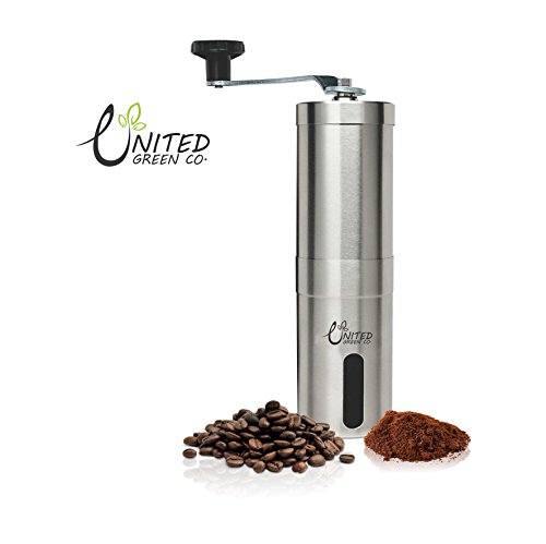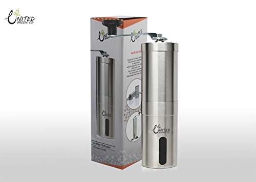 -. Title : United Green Co Manual Coffee Grinder with Ceramic Burr, Portable Coffee Mill, Aeropress Compatible, Stainless Steel,
