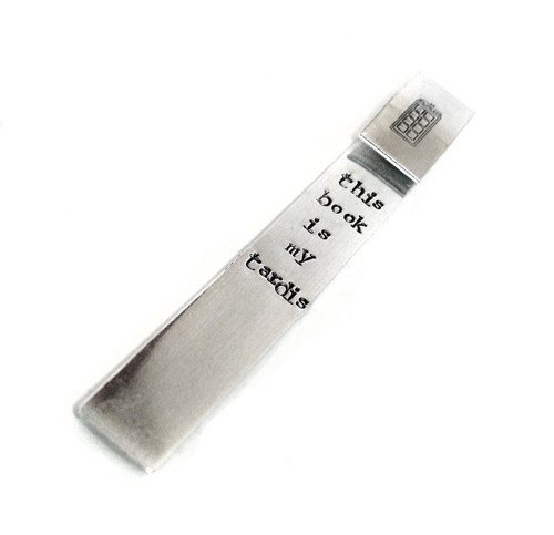 - A sturdy, shiny aluminum bookmark, stamped by me with "this book is my tardis", along with our exclusive TARDIS stamp.
