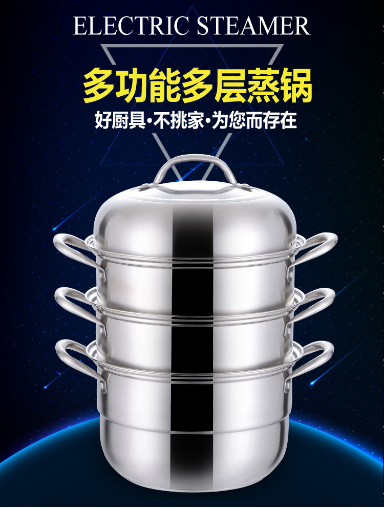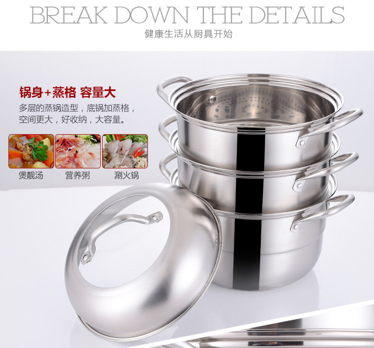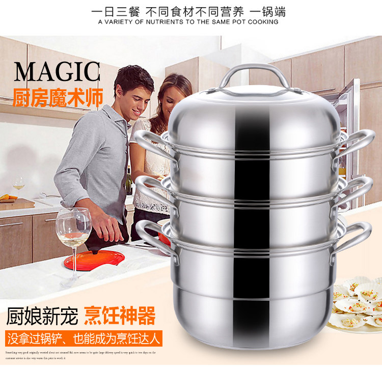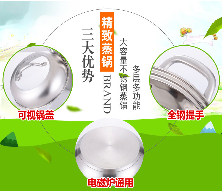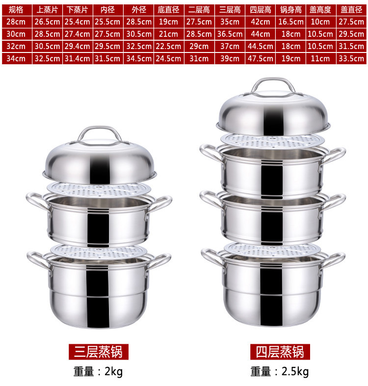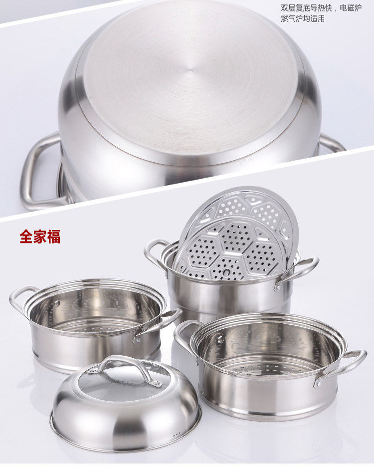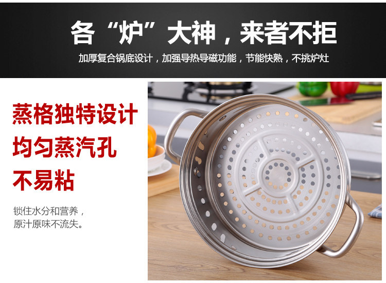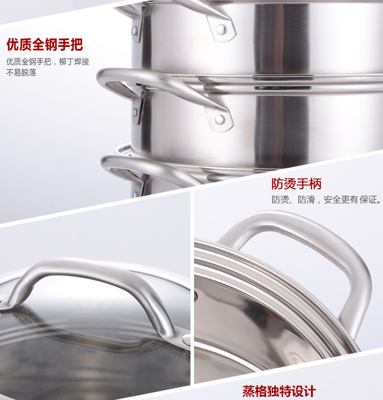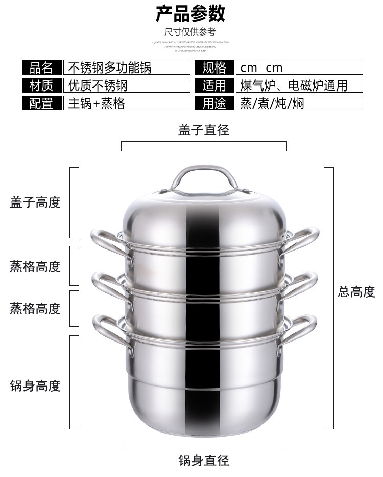 层数: 3层直径: 32cm材质: 304不锈钢锅底类型: 三层复合钢Number of layers: 3 floorsDiameter: 32cmMaterial: 304 stainless steelBottom type: three composite steel