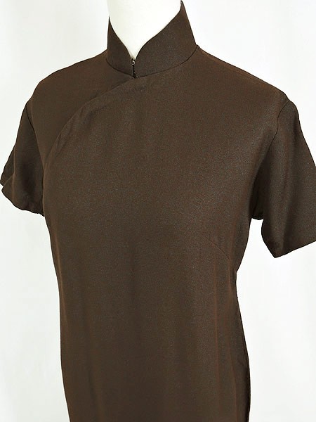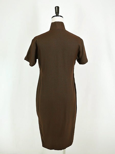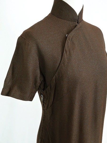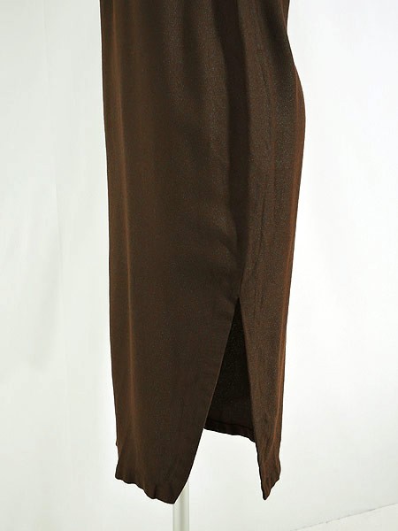 Ladies ブランド- カラー茶 メール便不可 コンディション★★★ 素材- 表記サイズ- スタッフコメントタグ無し、サイズ、素材不明 サイズは下記実寸サイズをご確認ください。 右袖後ろに穴リペア跡あり。 実寸サイズ 着丈 97 cm 身幅 45 cm 肩幅 40 cm 袖丈 17 cm スリット 25 cm ※ウエスト・ヒップ以外は平置き採寸