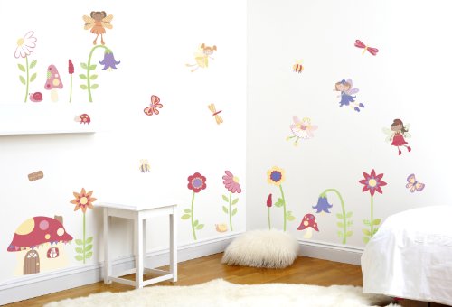 FunToSee Enchanted Fairy Garden Girls Nursery and Bedroom Decal Kit, Fairy