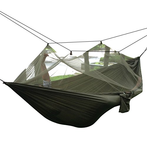 Dayincar Camping Hammock Mosquito Net Hammock Hiking Hanging Bed Portable High Strength Parachute Fabric travel bed for Outdoor Travel Army Green