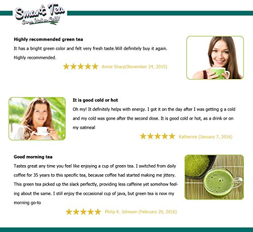 -. Binding : Grocery -. Brand : Smart Tea -. Feature : ✔ THE BEST GREEN TEA POWDER TO LOSE WEIGHT: Scientific studies have discovered that the main ingredients responsible for green tea slimming effects are caffeine and EGCG (epigallocatechin gallate). / ✔ ONE SINGLE INGREDIENT: 100% pure green tea made from ground tea leaves. No flavors, preservatives, colors or fillers of any kind added. Not the diluted, off-tasting chemical filled product you're used to buying in the supermarket. This is as pure as it gets! / ✔ HEALTHY ALTERNATIVE TO COFFEE: Minimally processed, and free of additives, Smart Tea's Instant Green Tea offers a delicious, easy to consume instant tea that contains over one hundred times more antioxidants as compared to brewed tea. / ✔ SIMPLE TO MAKE: Just add hot water (no brewing needed), stir and drink as is or add to your favorite smoothie! / ✔ LOVE IT OR YOUR MONEY BACK GUARANTEE: If you can't honestly state that this product isn't the highest quality, best tasting green tea powder you've ever tried, then we don't deserve to keep your money. You have every right to ask for a full, no-questions-asked, on-the-spot 100% refund anytime you decide. -. IsAdultProduct : 0 -. PackageQuantity : 1 -. ProductGroup : Grocery -. ProductTypeName : GROCERY -. Title : Smart Tea Instant Green Tea Powder - 100% Pure Tea - No Fillers, Additives or Artificial Ingredients of Any Kind (2 oz - appx 50 Servings)