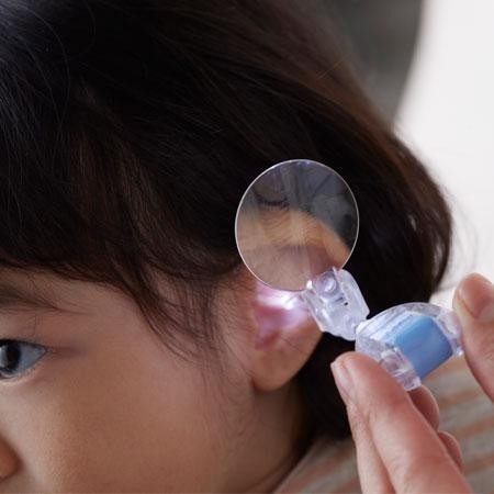 | 耳かきの先端が光り、耳の中を明るく照らします。約3倍の拡大レンズで、とても見やすく、耳そうじがしやすい。 |